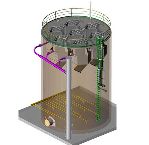 Sem paradas para limpeza do leito, ideal para processos de desnitrificação, remoção de fósforo, produção de água superclara em processo de fabricação de papel, fabricados totalmente em AISI 304L ou superior em todas as partes em contato com a água.